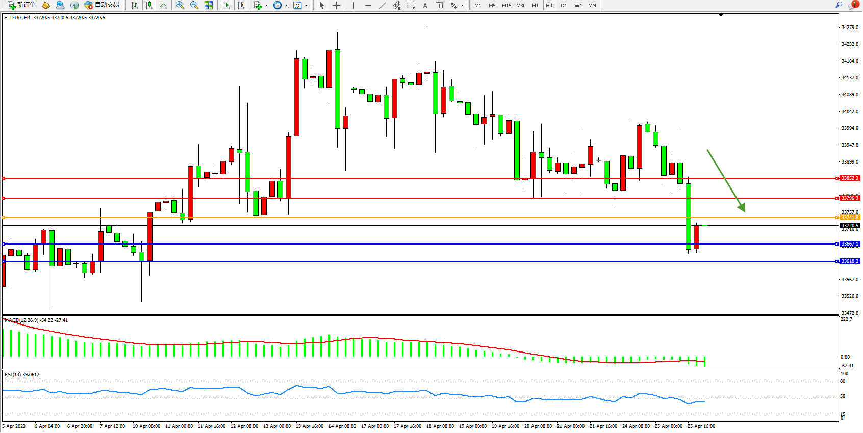 道琼斯指数4月25日(周二)收盘下跌343.68点,跌幅1.01%,报33531.72点;由于借贷成本上升给购房者带来压力,美国2月份的年度房价涨幅有所放缓。2月份全美房价较上年同期上涨2%,低于1月份的3.7%。在借贷成本突然迅速飙升令许多潜在买家望而却步之后,全美各地的市场已经降温。