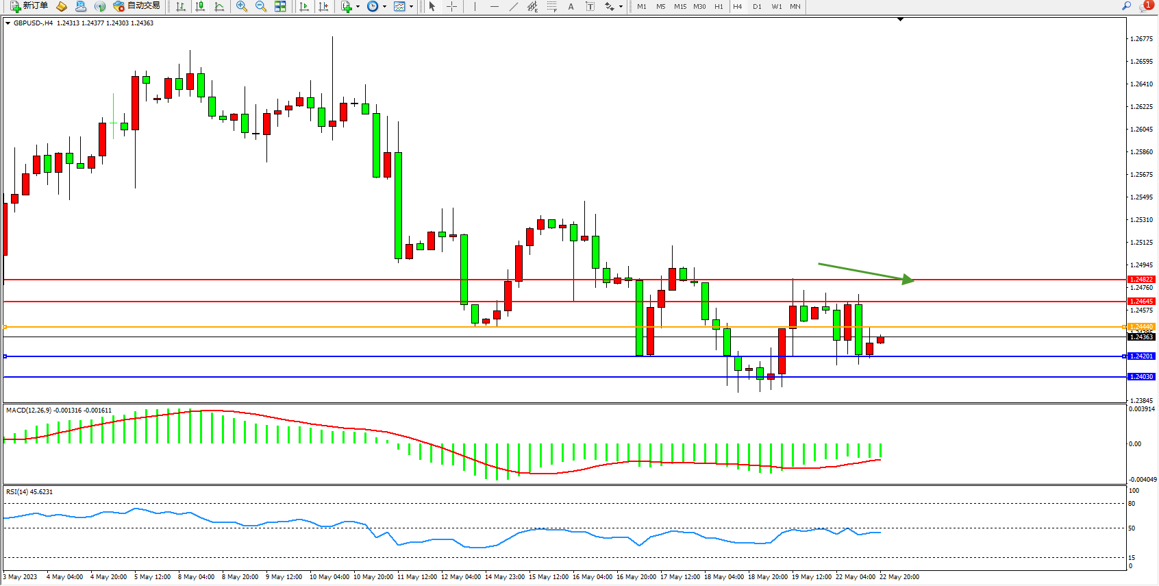 阻力位:1.24645  1.24822