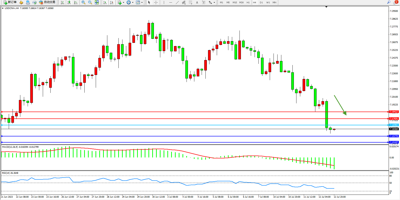 交易策略:7.18962下方看跌,目标7.15770 7.15107