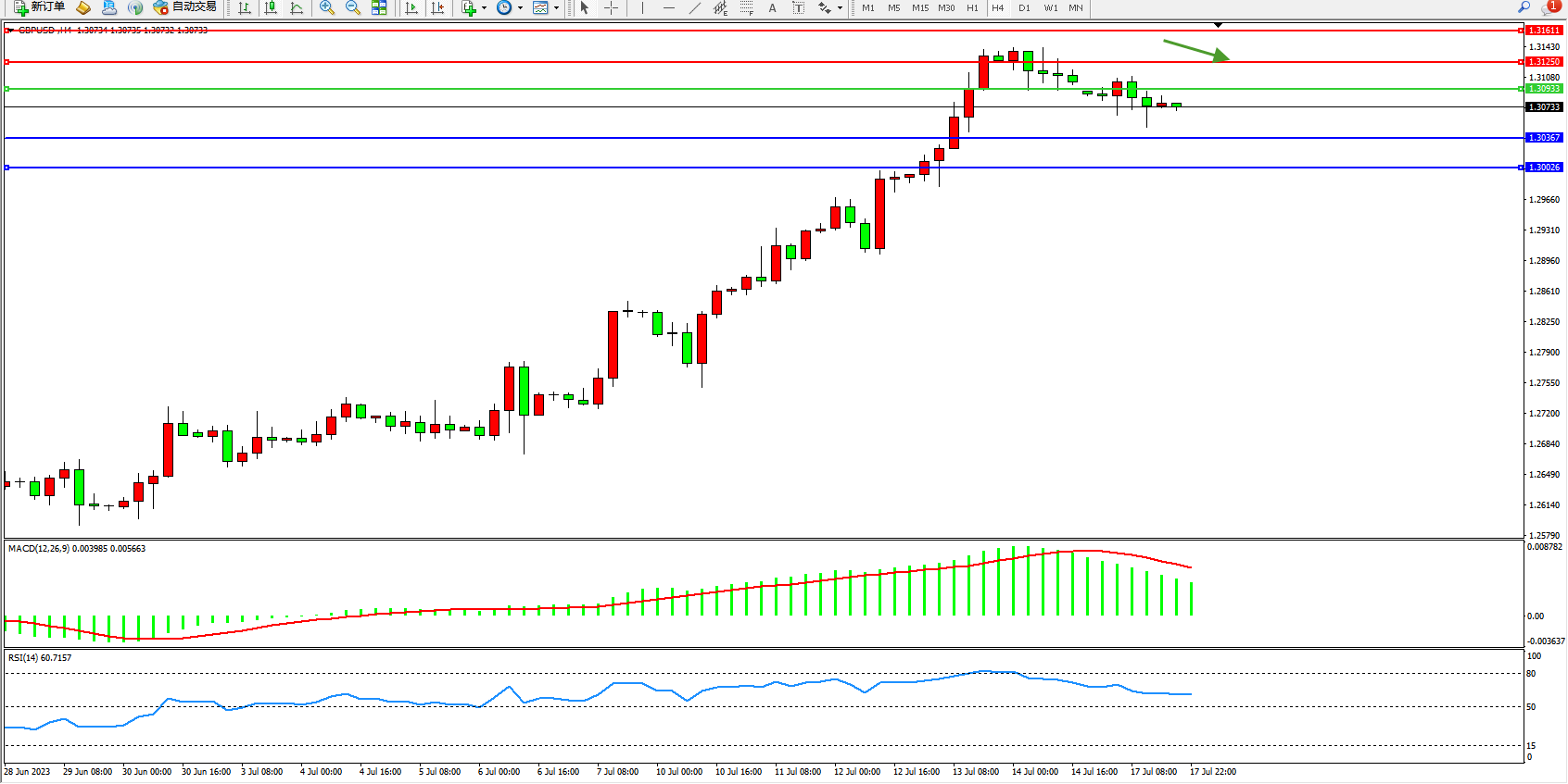 备选策略:1.30933上方看涨,目标1.31250  1.31611