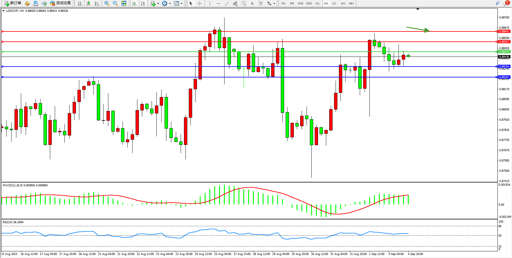 交易策略:0.88476下方看跌,目标0.88354 0.88264