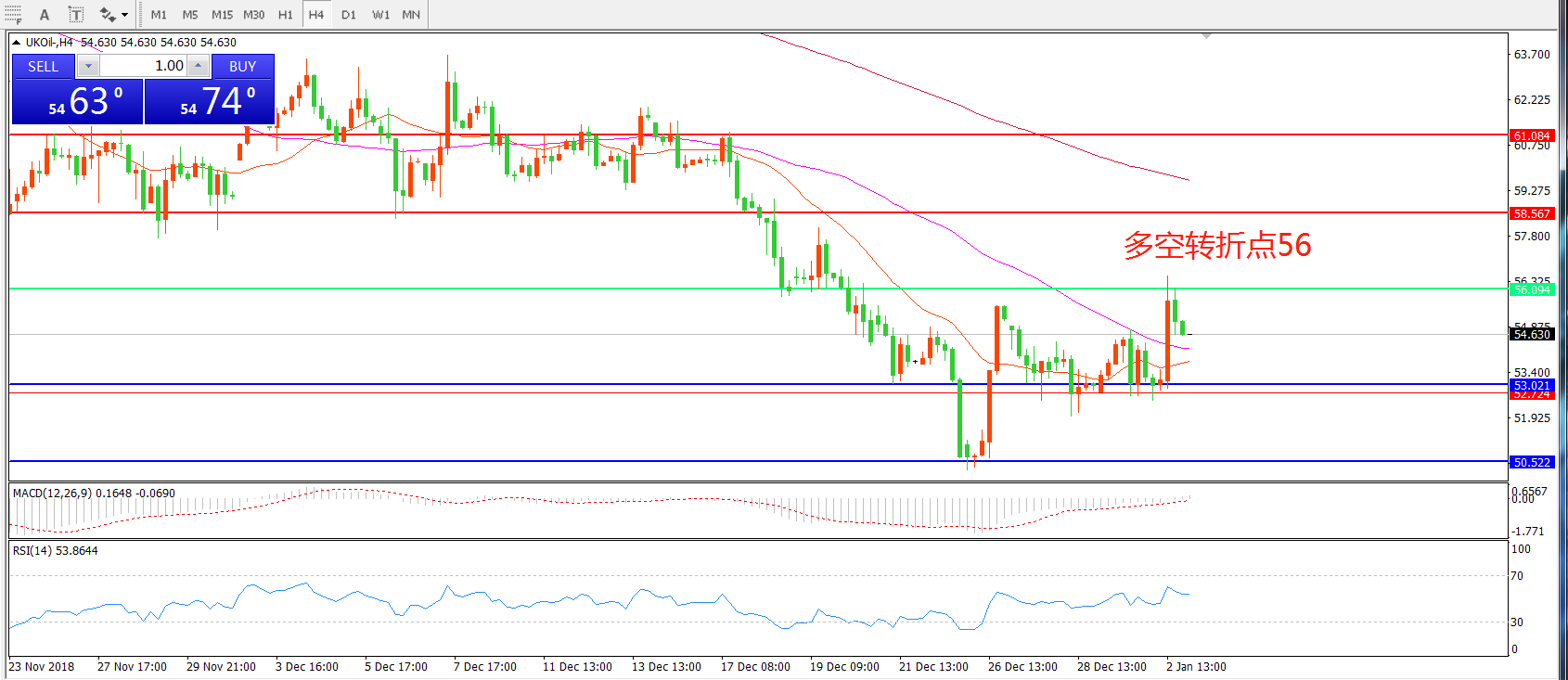 交易策略:在56.00之下看跌,目标53.00   50.00