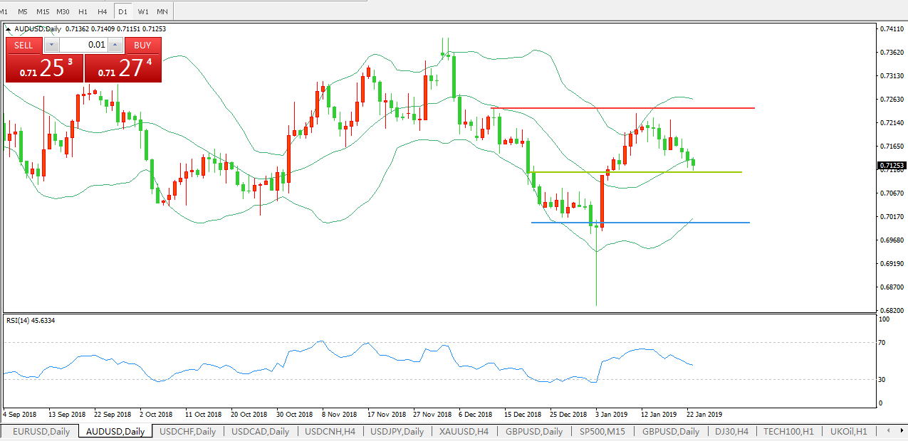 基本面分析:去年第四季,中国经济增长在国内需求疲软和美国关税的压力下降温,将2018年的经济增速拉至近30年来的最低水平。越来越多的中国经济疲软迹象加剧了人们对世界经济风险的担忧。澳元温和下行。