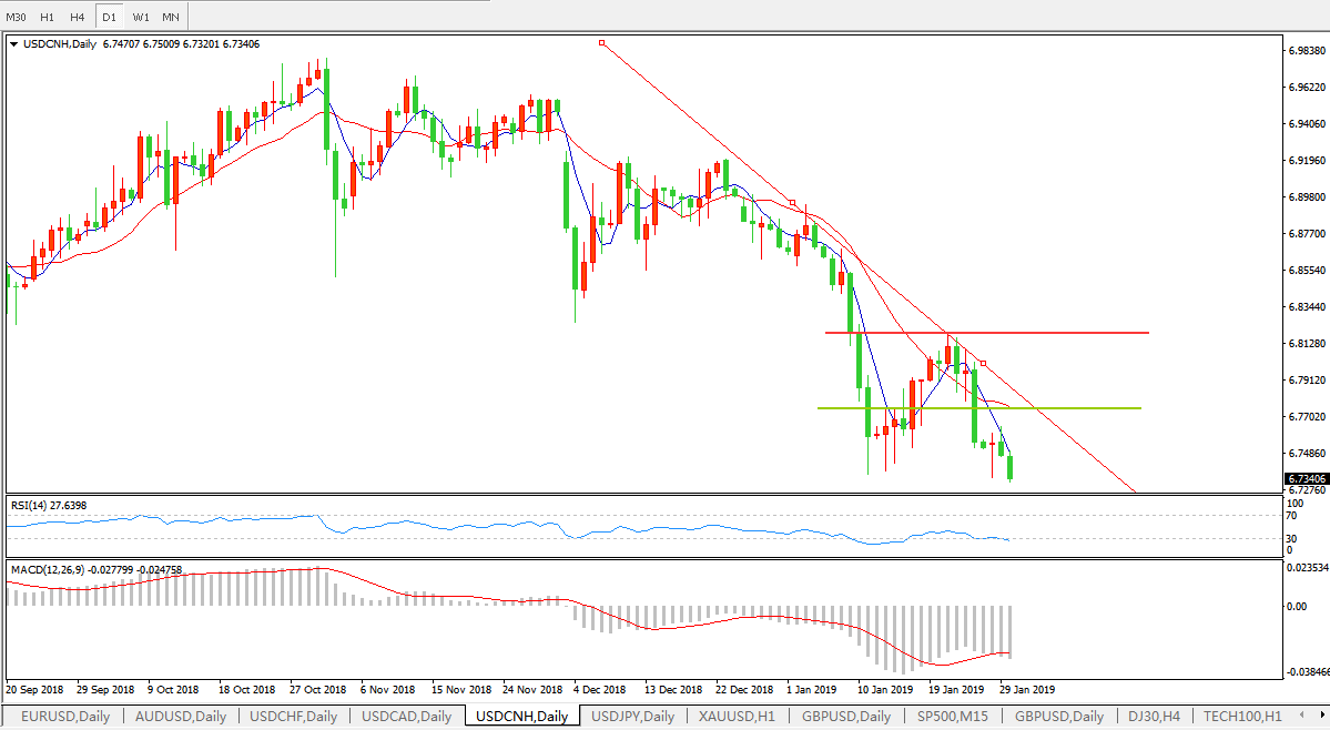 交易策略:在6.7750之下,看跌,目标价位为6.7240,然后为 6.7000 。
