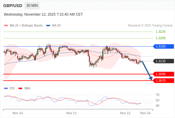 在 1.3180 之下,看跌,目标价位为 1.3095 ,然后为 1.3075 。