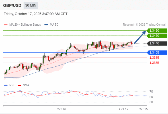 在 1.3405 之上,看涨,目标价位为 1.3470 ,然后为 1.3490 。