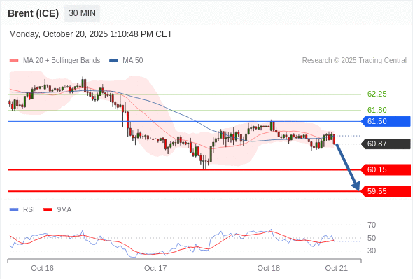 布伦特原油 (ICE) (Z5) 当日内: 短期关键阻力位在61.50。
