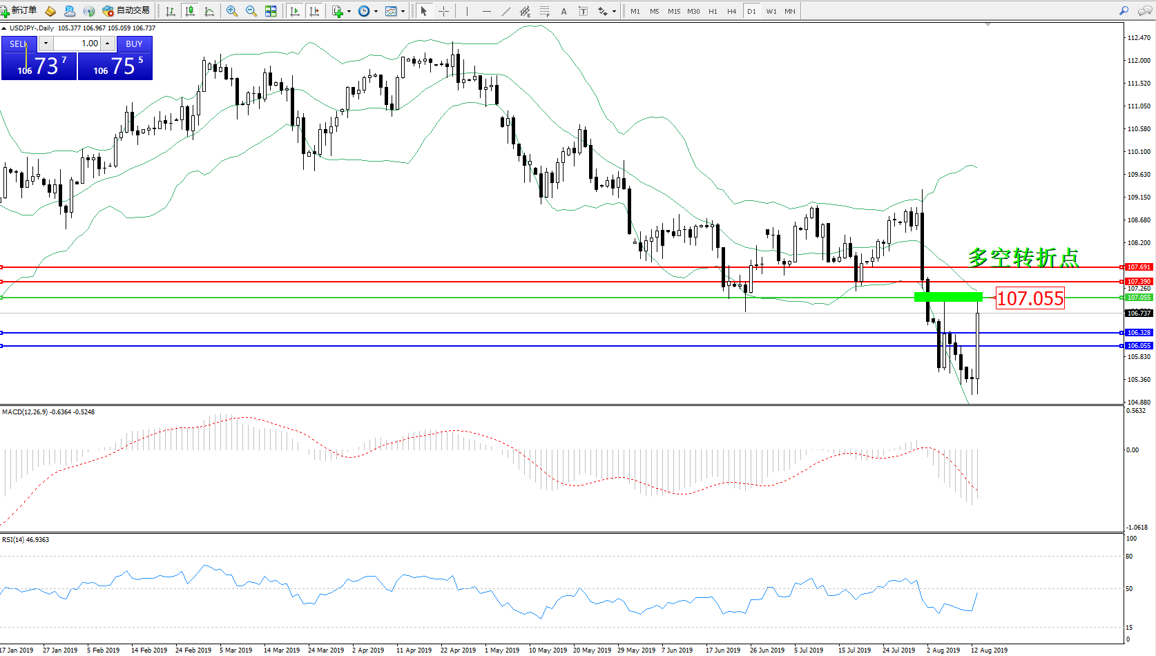 美元兑日元反弹至1067关口。此前市场避险情绪高涨,使得避险日元获得提振。美国联邦基金利率期货显示美联储2019年降息的概率在美国CPI数据公布后下降,提振了美元,但眼下市场仍聚焦在避险中,有隔夜阿根廷的局势等等,外加对全球增长放缓的担忧。央行能做的是有限的,而很多国家的央行都在接近记录水平的低利率状态中,但这很难阻碍全球经济增长放缓。