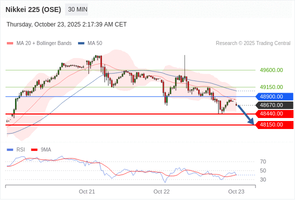 在 48900.00 之下,看跌,目标价位为 48440.00 ,然后为 48150.00 。