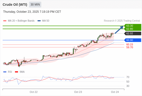 在 60.90 之上,看涨,目标价位为 62.80 ,然后为 63.30 。
