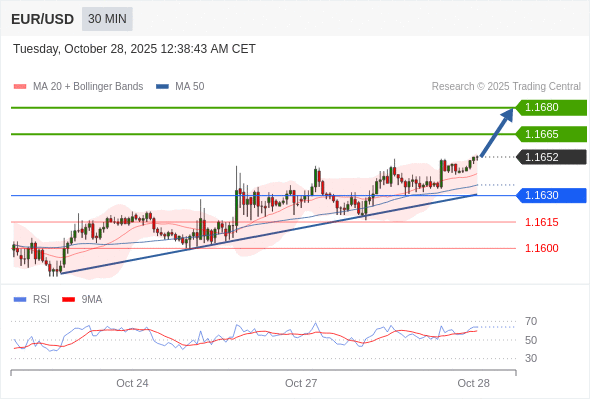 在 1.1630 之上,看涨,目标价位为 1.1665 ,然后为 1.1680 。