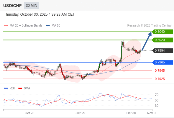 在 0.7965 之上,看涨,目标价位为 0.8020 ,然后为 0.8040 。