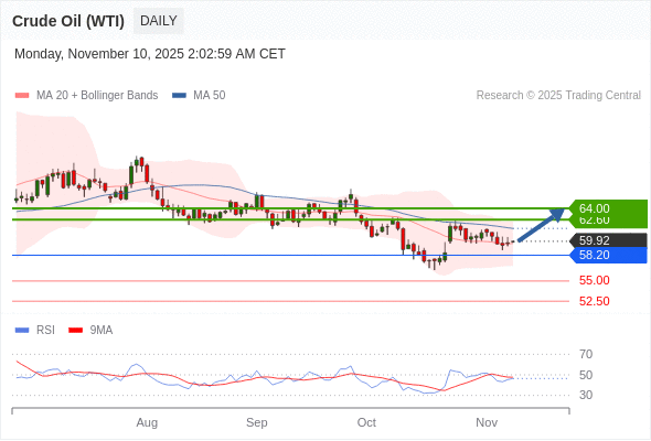 在 58.20 之上,看涨,目标价位为 62.60 ,然后为 64.00 。