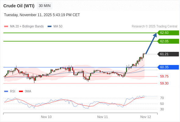 在 60.35 之上,看涨,目标价位为 62.05 ,然后为 62.60 。