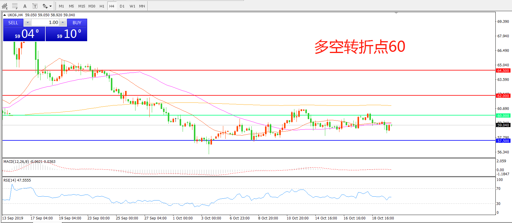 交易策略:在60.00之下看跌,目标57.50 55.00
