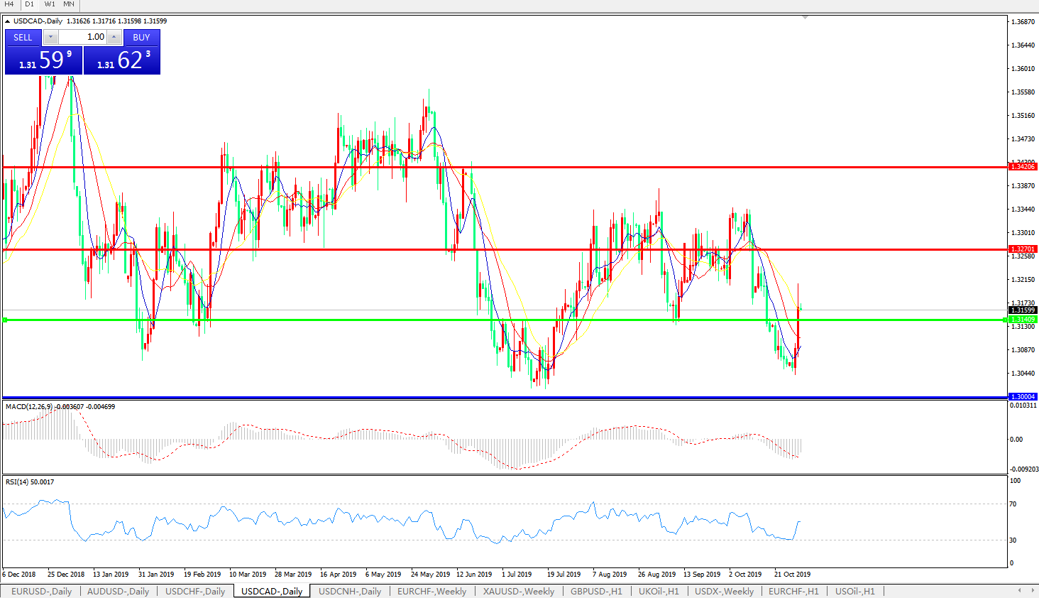 加拿大央行维持利率不变,全球风险因素导致政策声明基调更偏负面; 加拿大央行周三连续第八次维持1.75%的政策利率不变,称此水平“适当”,不过他们下调了对未来两年的增长预期,他们预测在全球经济下行风险加剧的情况下,国内经济前景偏弱,这可能给该行提供更多降息空间;10月份的声明较9月声明有所改变,表明官员们在全球经济疲软的情况下信心不足。10月声明中删除了有关加拿大利率对经济具有刺激性的明确说法,也未提及加拿大经济接近于潜力水平,周三的声明提到加元近期的上涨;该声明和新一轮的更为悲观的增长预测将使人们对加拿大央行有关中性利率立场的承诺提出质疑,特别是在其他许多国家实行宽松政策之际,加拿大央行显得特立独行。如果美联储在今天晚些时候如预期所料降低利率,加拿大央行的政策利率将是工业化国家中最高的; 官员们少见的在利率声明中提到了加元。他们指出,尽管大宗商品价格下跌,但加元兑美元并未贬值,实际上兑其他货币走强了。与此同时,央行预计通货膨胀率在可预见范围内将保持在2%的目标区间,部分原因是对潜在经济增速预期进行了小幅下调,并预期“适度”的产出缺口(主要是石油产区)将缩小