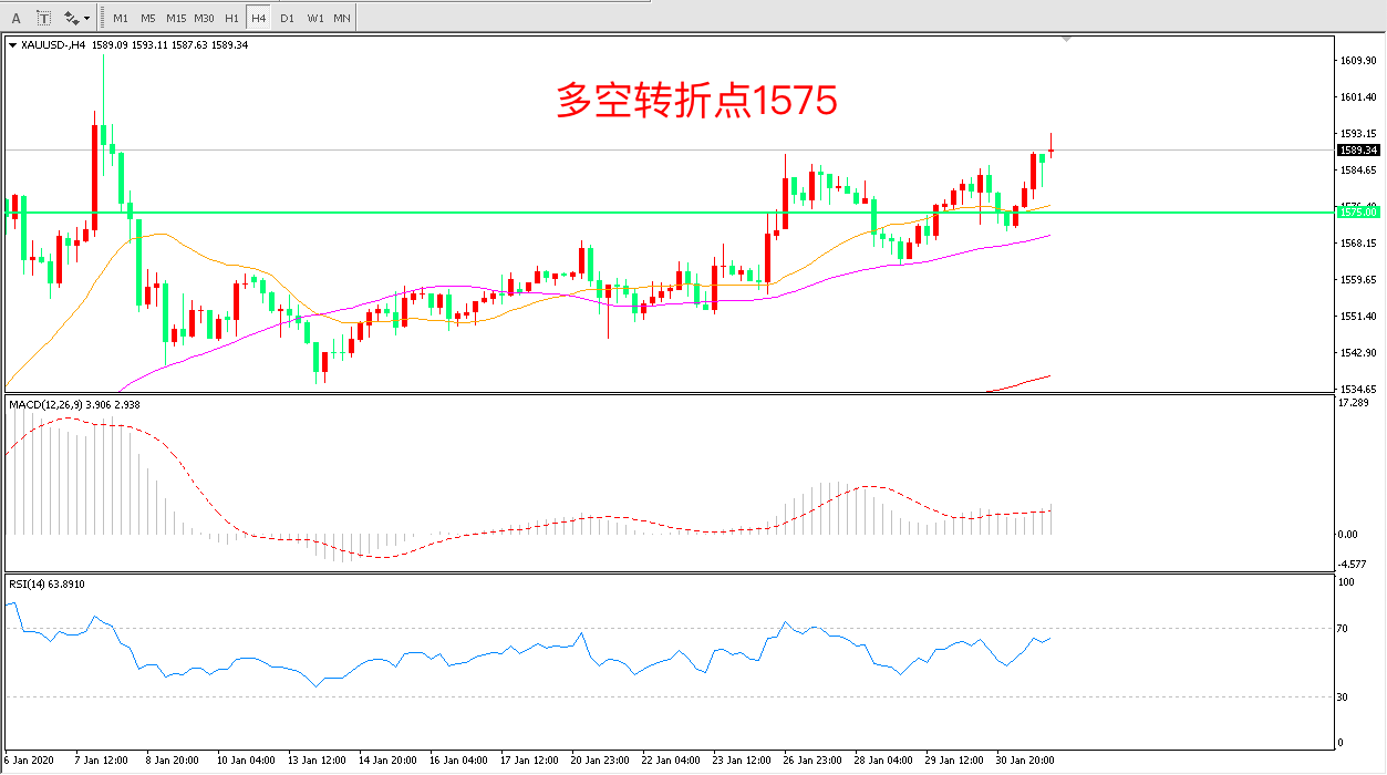 备选策略:在1575.00之下看跌,目标1530.00   1500.00