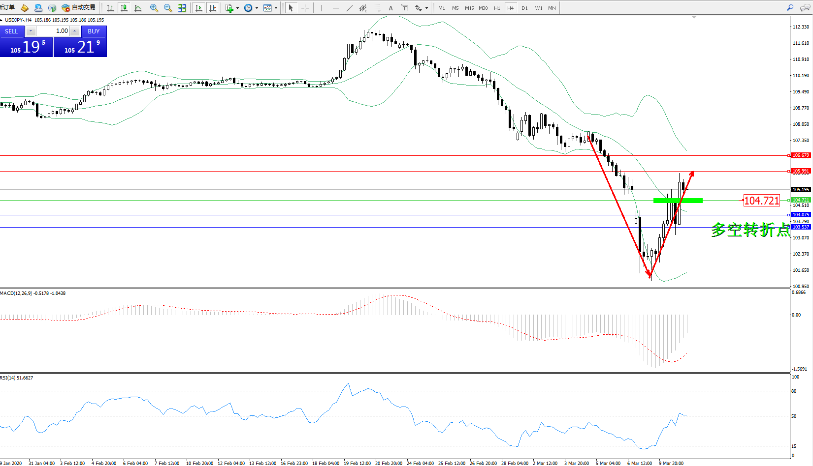 日元从周一创下的2016年以来高点回落,美元兑日元上涨3.2%至105.64,日内金融市场恐慌情绪消散,国际油价大幅反弹,同时全球股市也大幅走高,美债收益率也有所走高,市场风险偏好情绪有所回暖,同时多国潜在的货币政策和财政政策也可能减轻疫情对全球经济的冲击,避险日元因此有所承压,基本上回吐了昨日的全部涨幅。特朗普宣布了系列财政刺激政策,暂时对日圆避险失去动力,美国方面重大的财政反应可能缓和市场对全球经济增长前景的忧虑。