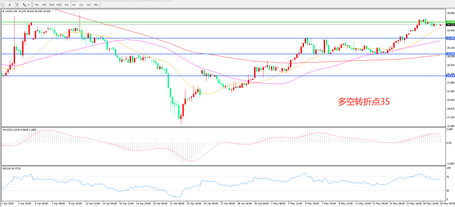 周三(5月20日)凌晨,美国石油协会公布的API数据显示,美国当周API原油库存减少480万桶,好于预期,成品油库存差强人意,精炼油库存大幅增加。数据公布后,布伦特油短线走高后回落,收报34.50美元/桶。近期油价一路高歌猛进,晚间的EIA数据有望成为行情的“助燃剂”。