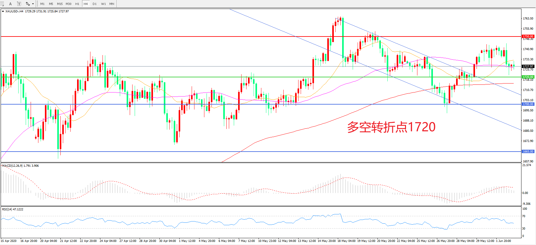 交易策略: 在1720.00之上看涨,目标1750.00 1785.00