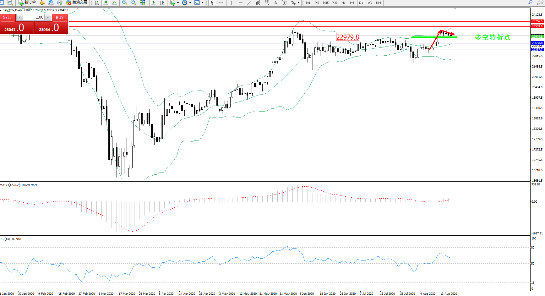 技术点评:长时间处于布林带指标通道内维持震荡平移后,低位多头动力开始反转上移,突破上轨附近节点后有继续拉升上扬态势,高位短暂维持整理平移,有平缓向下移动迹象,布林带指标呈平移走势后有即将张口迹象,关注中上轨附近转折点,MACD指标处于0轴线附近弱势持续整理平移中,RIS指标处于50均衡线附近持续整理数日后开始强势拉升,再度回撤向下移动;