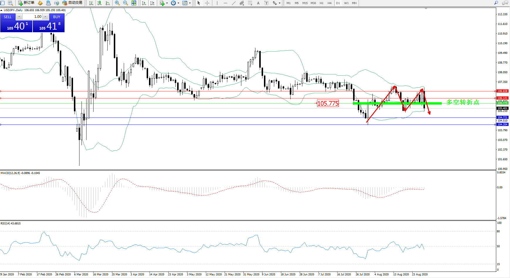 多空转折点:105.775