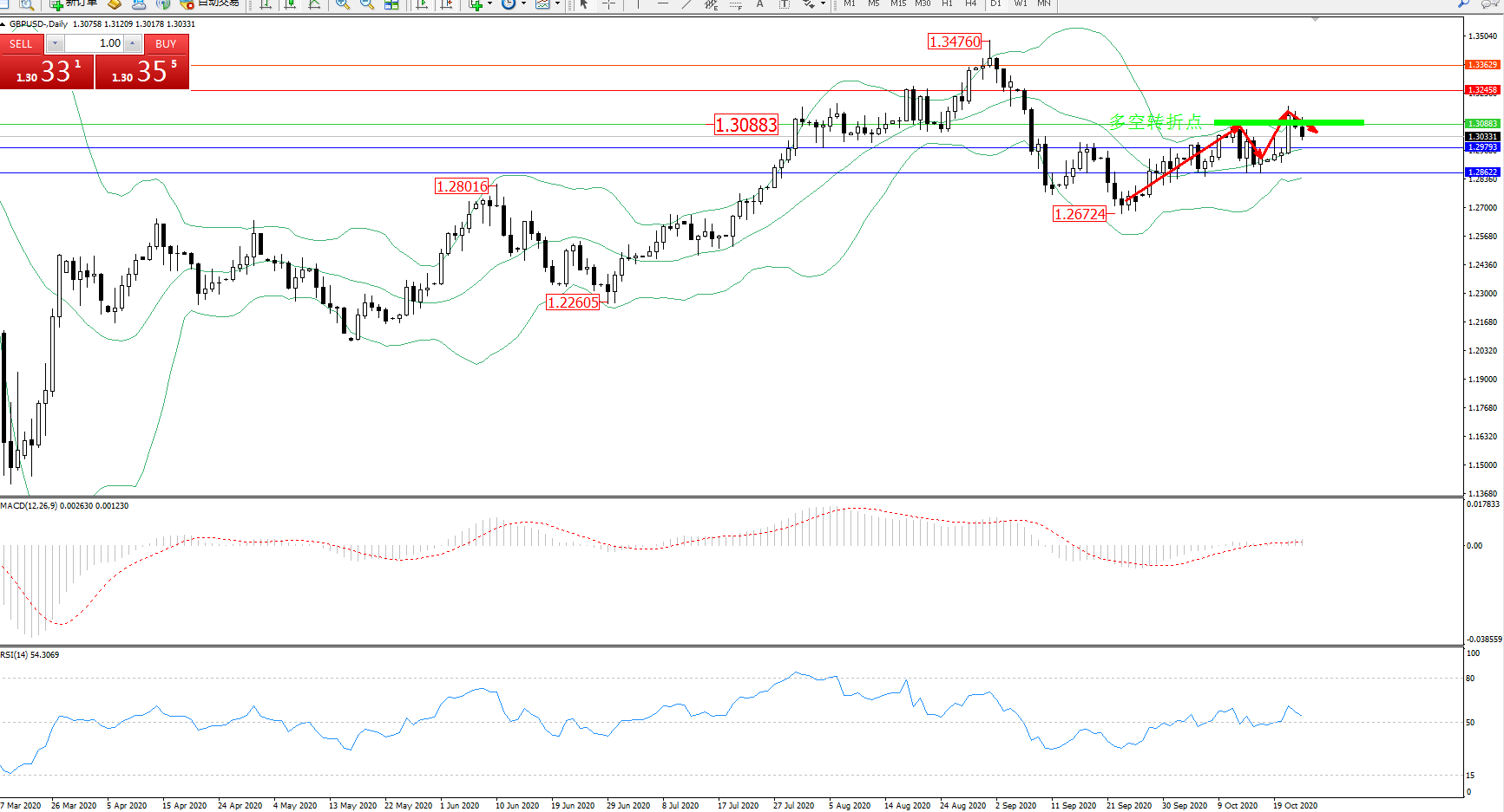 多空转折点:1.30883