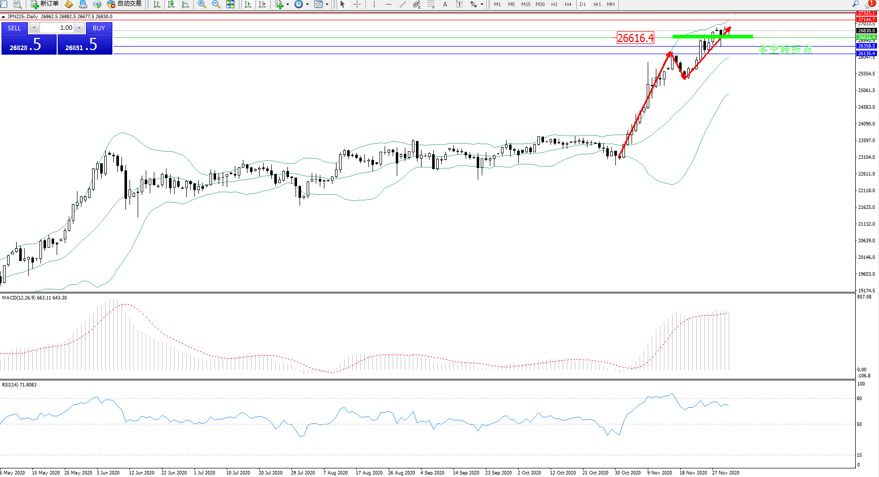 日经225指数12月2日(周三)收盘上涨1.46点,涨幅0.01%,报26789.00点。日本央行副行长雨宫正佳:对于地区银行来说,拥有充足的资本是至关重要的。日本央行将坚持当前的宽松政策。需要关注经济的下行风险。关于疫情补助的延长,日本央行将作出正确的决定。希望尽快推出新方案来尽快加强区域财政系统。新的存款机制和货币政策是不同的。新的存款机制对利率的影响很小。任何影响都可能被货币调整所抵消。加强区域金融的新体系影响整体市场利率的可能性非常低。日本东京新增500例新冠肺炎确诊病例,重症病例达59例。