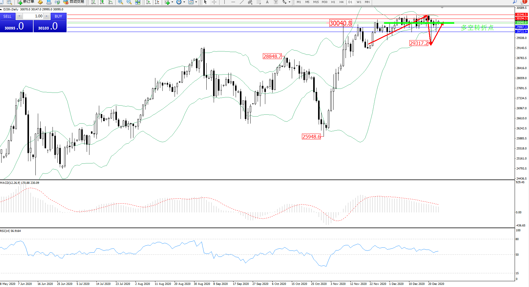 道琼斯指数12月24日(周四)收盘上涨70.04点,涨幅0.23%,报30199.87点。美股三大指数全部收涨,投资者带着希望进入圣诞长周末。虽然股市在12月最后几天往往表现良好,这种行情被称为圣诞升势,但今年疫情加重和即将到来的乔治亚州参议院选举给前景蒙上了一层阴影。美元指数跌0.04%,报90.32;本周,美元指数上涨0.44%,创下11月中以来的最大周涨幅。汇市似乎也已摆脱了美国总统特朗普对国会早些时候批准的财政救助方案的批评,这可能会让该法案陷入僵局。美国众议院共和党人和民主党人周四阻止了对2.3万亿美元的新冠援助措施和政府支出一揽子计划进行修改的努力,这让人们对该议案的未来生疑,此前特朗普总统要求对议案进行广泛修改。