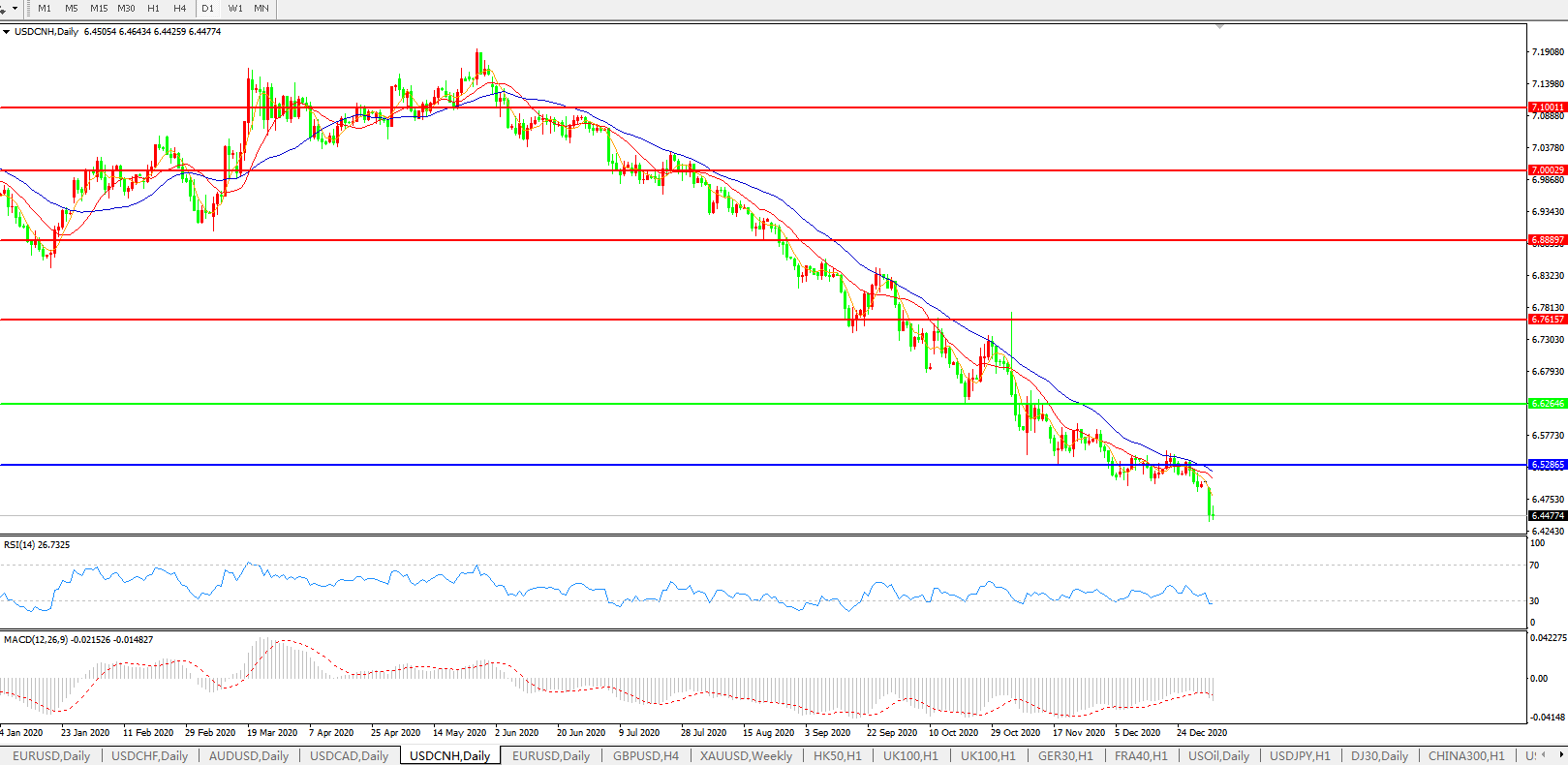 人民币兑美元即期周一收盘放量劲升770点(或1.19%)至6.4628元,离岸人民币即期亦升破6.45元关口,两者均创逾两年半新高;中间价则因上日美指反弹而下跌159点;交易员称,跨年之后交易热情明显释放,市场流动性显著回暖,人民币很快升破去年底横盘的底部区间,接连升破多个关口; 招商证券总量团队最新年度预测认为,随着全球流动性从收缩期进入扩张期、全球风险偏好改善,投资者开始减少持有作为安全资产的美元,推动美元进入九年左右的弱势周期,美元指数有望回落到70左右的水平;全球汇市方面,美元新年开局全面下滑,投资者在亚洲时段抛售美元并买进其它任何资产,押注全球从疫情中复苏将推高其它货币; 美国利率较低,又有着巨大的预算赤字和贸易逆差,且人们相信全球贸易回升将推动非美元货币走高,这些因素使美元处于下跌通道;随着越来越多的投资者加入卖出美元的行列,美元跌势逐渐加快;2020年美元指数录得2017年以来的首次年度跌幅,比3月份疫情恐慌最严重时期触及的三年高位下降了约13%。