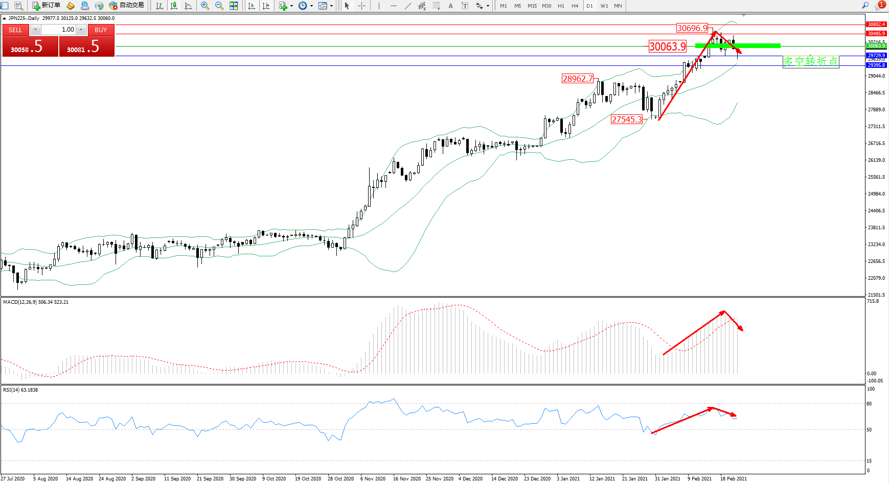 日经225指数2月22日(周一) 收盘上涨153.08点,涨幅0.51%,报30171.00点。周末以降全球市场风险情绪随着疫情进一步消退的趋势而继续升温,此前以色列科学家发布报告称辉瑞新冠疫苗确实已经大范围起效阻断了疫情传播,这令全球市场的风险偏好情绪进一步升温;日本工业部:日本1月份粗钢产量同比下降3.9%。1月份粗钢产量环比上涨5.3%,达到792万吨。日本央行的方向一直是减少购债,该行在1月和2月削减了对中期债券的购买,此前还削减了对超长期债券的购买。但预计日本央行目前不会对收益率上升采取行动,因为这是美国国债收益率上升导致的,而不是由于日本的供需失衡造成的。预计日本央行很可能在10年期国债收益率接近0.2%之前按兵不动。