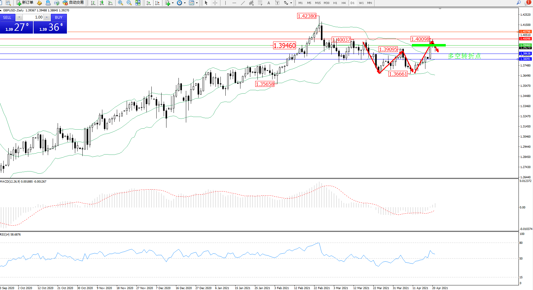 备选策略:1.39460上方看涨,目标1.40098、1.40798