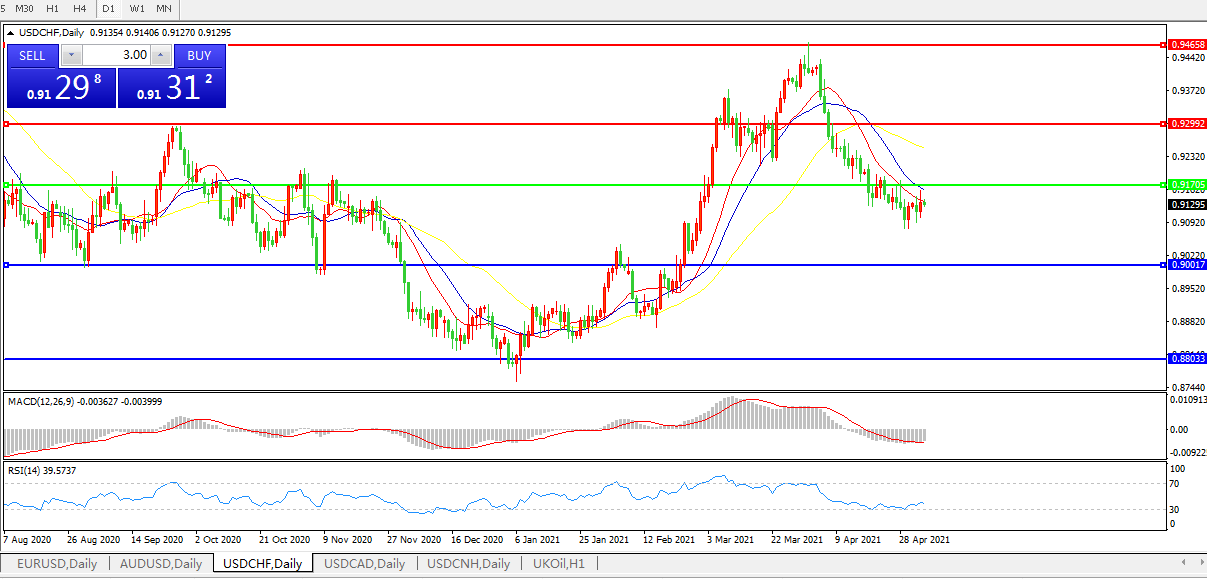 交易策略:0.9170下方看跌,目标0.9000、0.8800