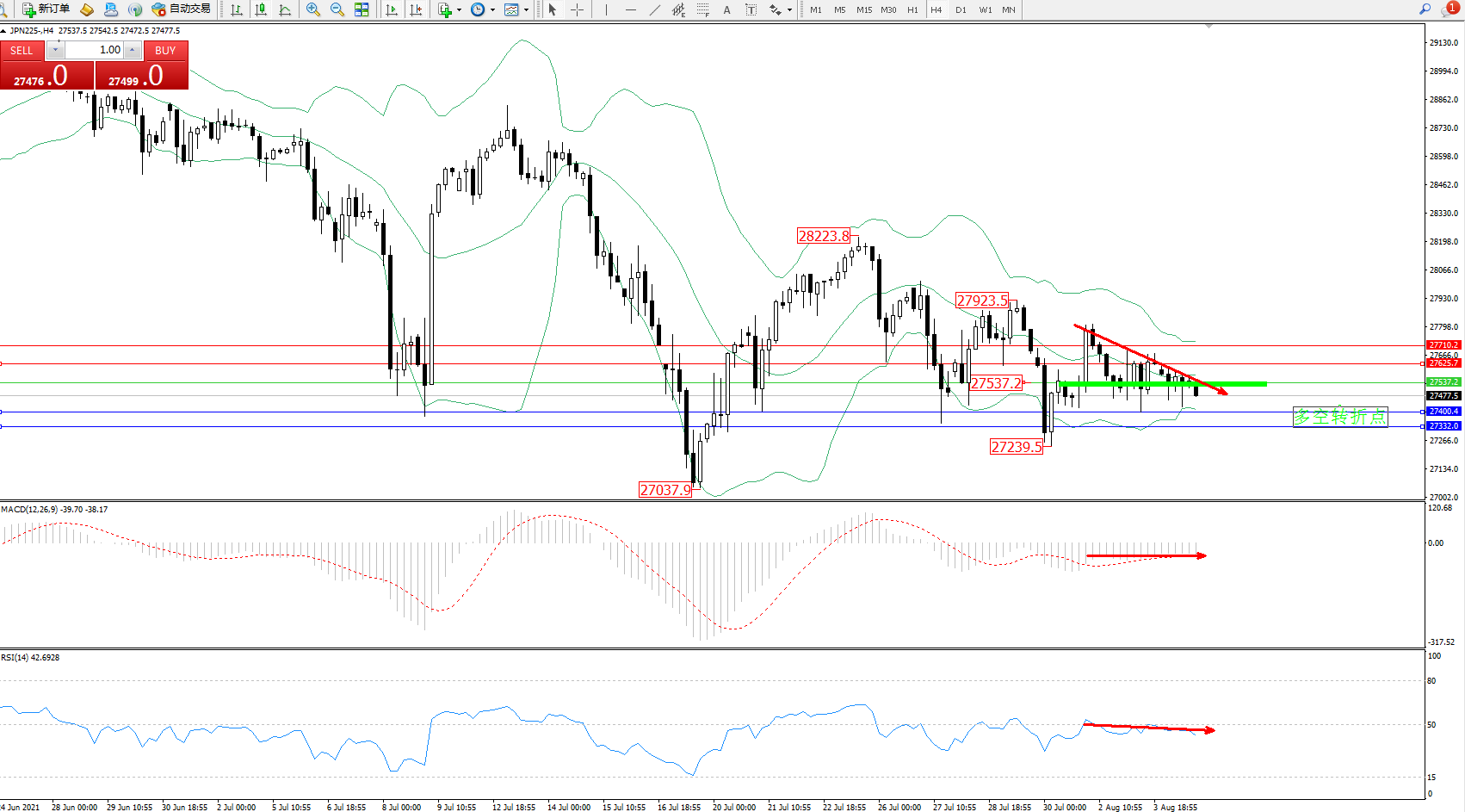 日经225指数8月4日(周三)收盘下跌61.33点,跌幅0.22%,报27580.50点。日本金融厅(FSA)专员:需要建立框架来验证ESG相关金融产品的合法性。从保护消费者的角度,将监督资产管理公司的ESG相关产品。10年期日本国债收益率下跌1.5个基点,从2月份0.175%的高位持续下跌,跌至0%,为去年12月以来首次,与近期美国国债收益率下滑走势相符。随着收益率下降,日本与美国的国债走势亦步亦趋,市场预期美联储将忽略近期通胀率的飙升,继续保持政策宽松。