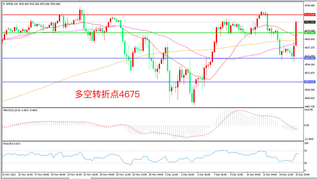 周三(12月15日),美联储决定将减码QE的速度提升一倍,而“点阵图”显示官员们预计明年将加息三次,更为鹰派,美股迎来巨震,标普500小幅回探后再度飙升,收报4702点。中期来看,美联储的加快Taper和暗示加息时间让市场打消了临近年末的一大不确定性,风险情绪回暖将推动美股再次走高。