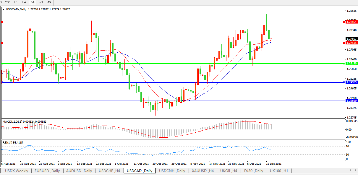 技术面简析:日图均线呈多头排列但均线走弱,汇价继续下挫,MACD运行于0轴上且量能再度放量,RSI小幅走弱,预计短期汇价大概率将进一步回落修正。