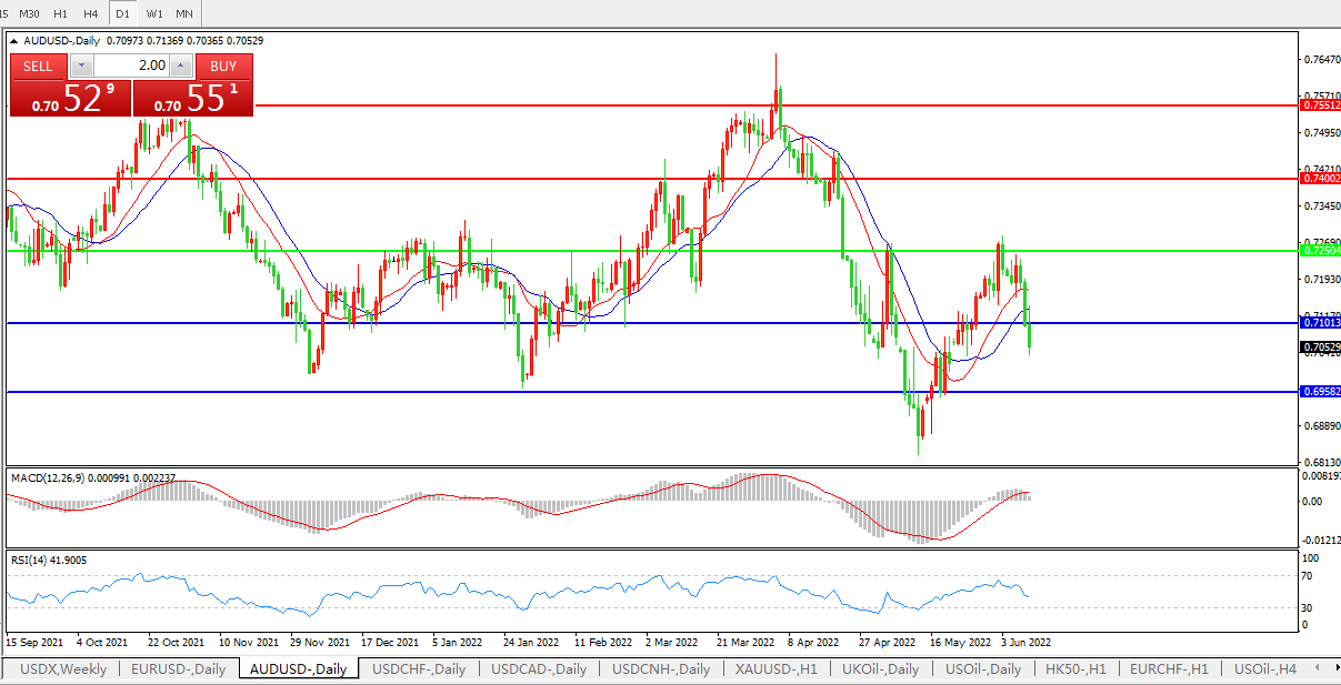 交易策略:0.7250下方看跌,目标0.7100、0.6950