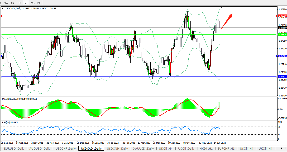 日线图看:持续运行于布林上轨整理蓄势 ,布林带指标开口走势上移中,MACD于0轴下上攻且量能快速放量,RSI稍微走弱,预计短期汇价大概率将在回踩整理后进一步上行。
