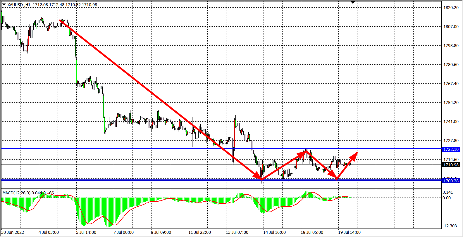 黄金:1700-1722区间震荡