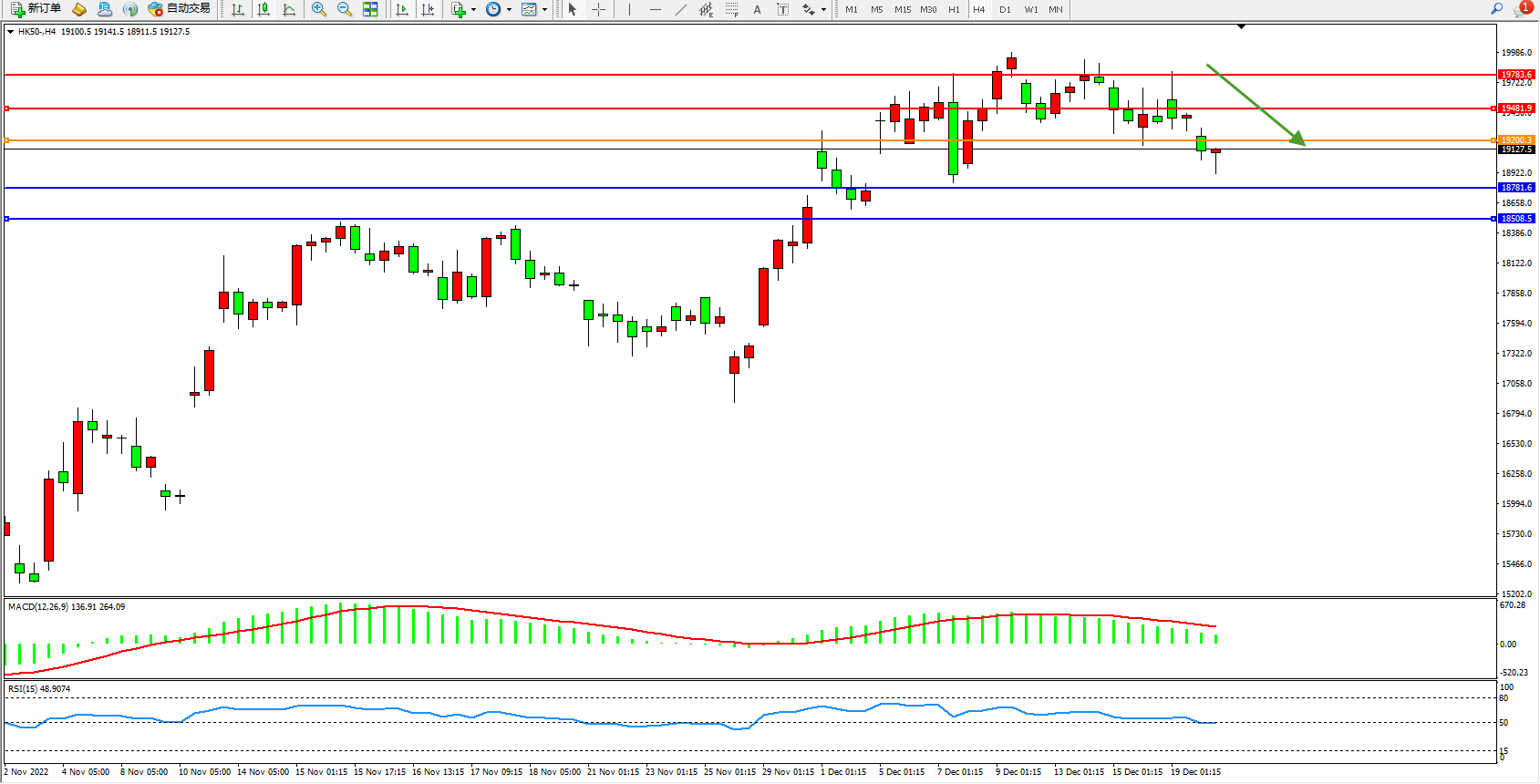 香港恒生指数12月20日(周二)收盘下跌258.01点,跌幅1.33%,报19094.8点;港股三大指数再度下跌,恒生科技指数一度跌至4.3%,收跌3.12%,恒指、国指分别跌1.33%和2%,恒指险守19000点。大型科技股齐挫,快手跌4.8%,百度跌超4%,阿里巴巴、腾讯跌超3%,澳门放宽入境核酸检测证明,博彩股逆势走强,昨日大跌的港口航运股多数上涨,燃气股、航空股表现相对活跃。丨香港医卫局举行记者会交代,医务卫生局副局长李夏茵指,周四(12月22日)起放宽社交措施,南下资金净流出1.38亿港元,大市成交额不足千亿港元。