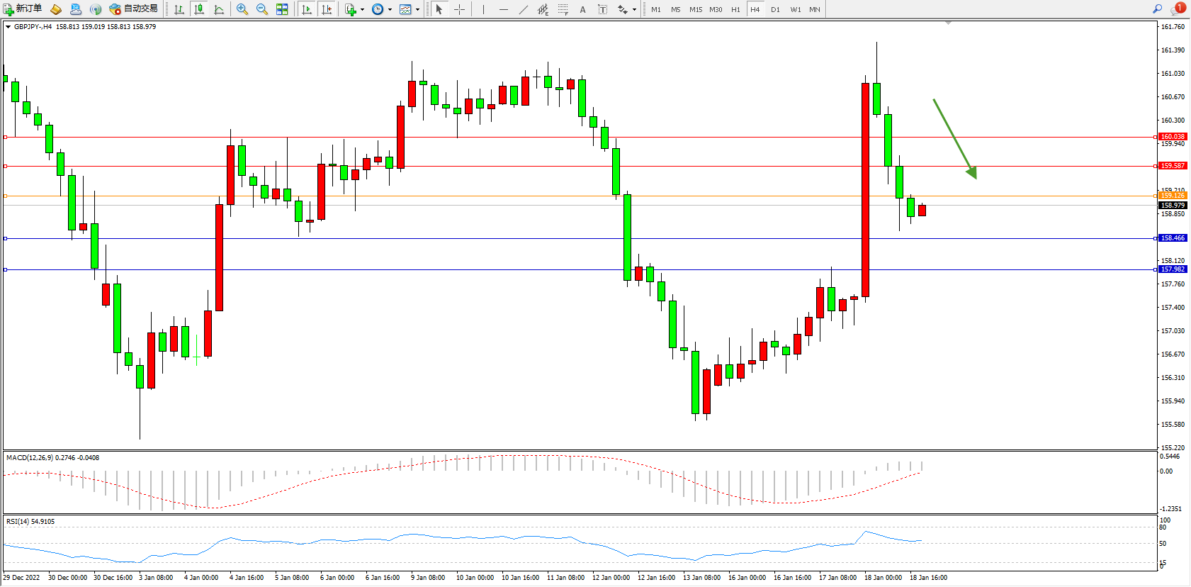 4小时图看:高位多头动力急速拉升后又呈倒V走势急速下挫,短期跌势或将延续,市场整体处于高位空头状态中,MACD指标处于0轴线上侧整理,RSI指标处于50均衡线上侧弱势徘徊;