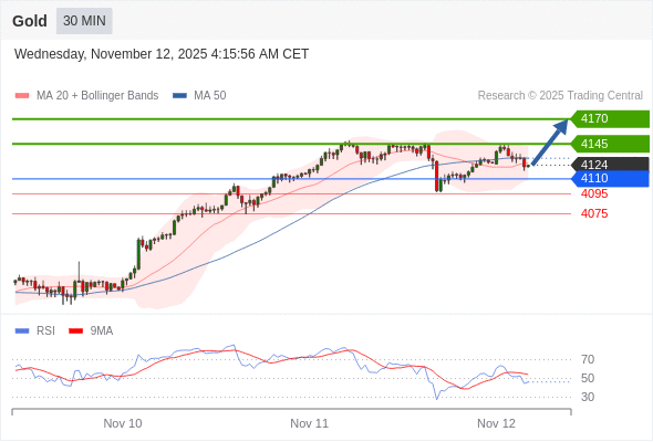 在 4110 之上,看涨,目标价位为 4145 ,然后为 4170 。